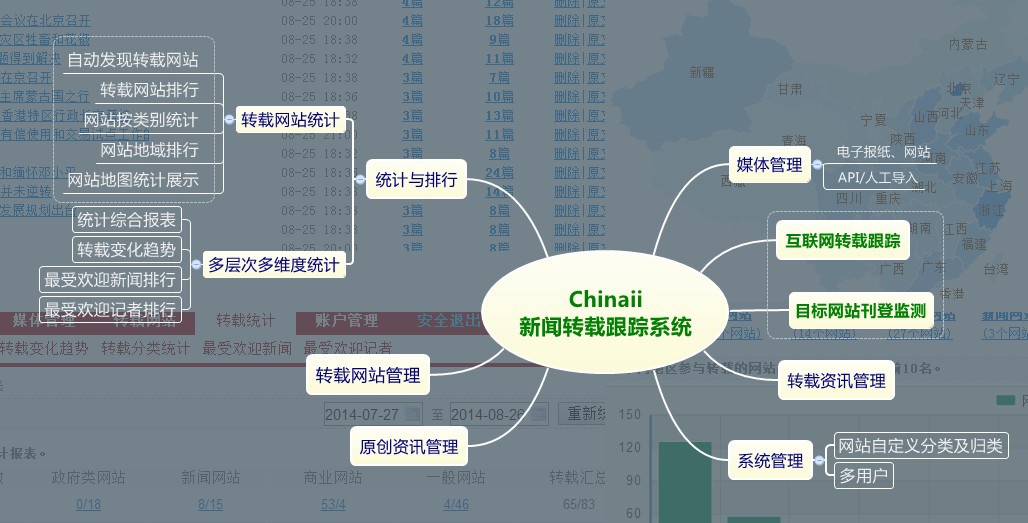 Chinaii新闻转载跟踪系统的基本功能,如下图所示: